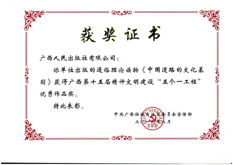 《中国道路的文化基因》丛书广西第十五届精神文明建设“五个一”优秀作品奖