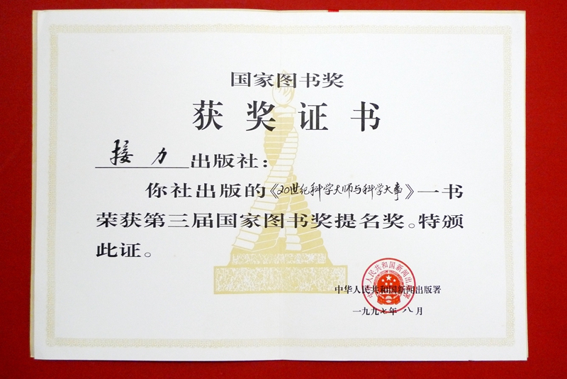 1997-第三届国家图书奖提名奖-《20世纪科学大师科学大事》-中华人民共和国新闻出版总署